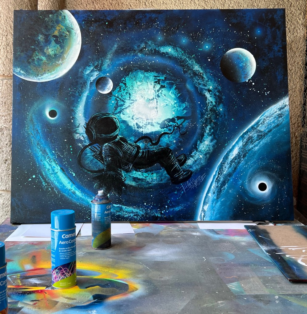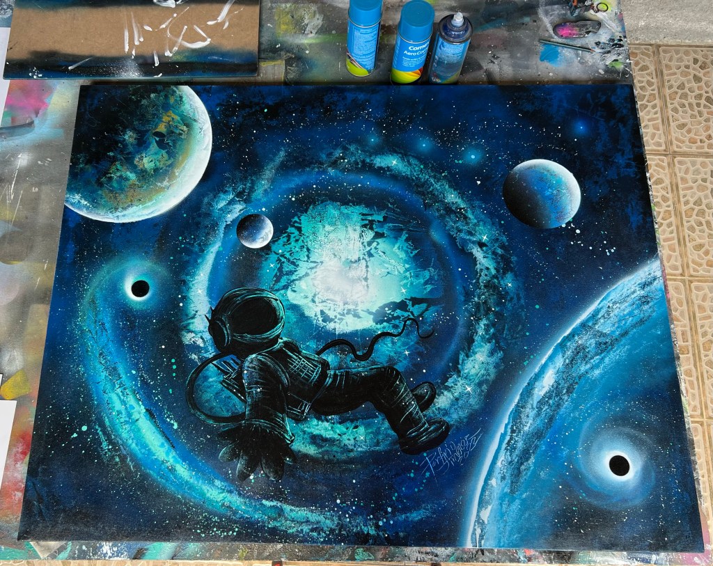Astronaut spray painting on canvas size 30×40 inches 200 usd and free shipping